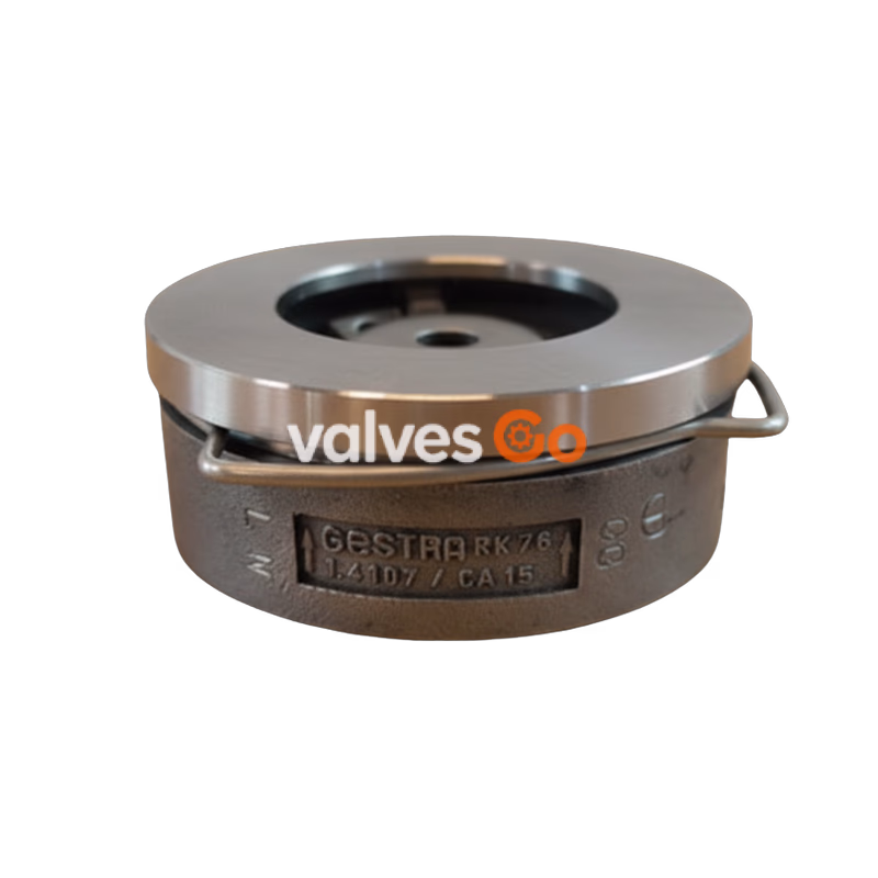 GESTRA RK 76 series flanged wafer check valves (also known as non-return valves) are specifically designed to prevent backflow in pipelines, featuring a wafer-type construction that can be directly clamped between two flanges for convenient installation. The product is equipped with a spiral centering ring to ensure precise installation alignment. It supports two designs: with spring (installable in any position) and without spring (suitable only for vertical pipelines with upward flow). The valve is suitable for various media including liquids, gases, steam and corrosive fluids, with pressure ratings covering PN6 to PN40 and ASME Class125 to 300, widely used in industrial pipeline systems.
