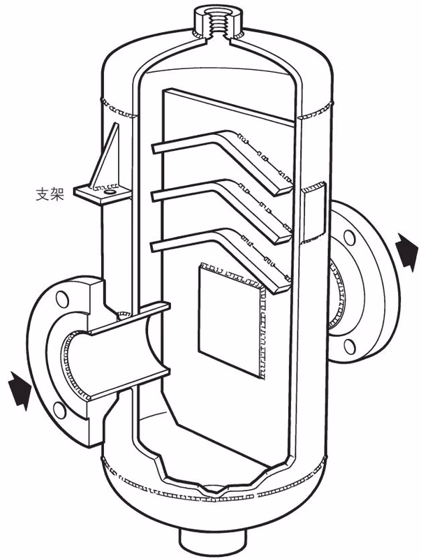 S7 挡板式汽水分离器是用于除去蒸汽、压缩空气和气体系统中的液体的理想设备。通过内部挡板的机械拦截,它能高效分离夹带的液滴并将其收集到排水口。根据不同的应用工况,需要配备合适的蒸汽疏水阀 (如 FT 浮球式) 或排液阀 (如 CA 系列) 以自动排放收集到的冷凝液。